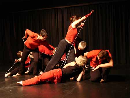 In den Tanztheatergruppen werden die TeilnehmerInnen angeleitet mit Bewegung, Stimme